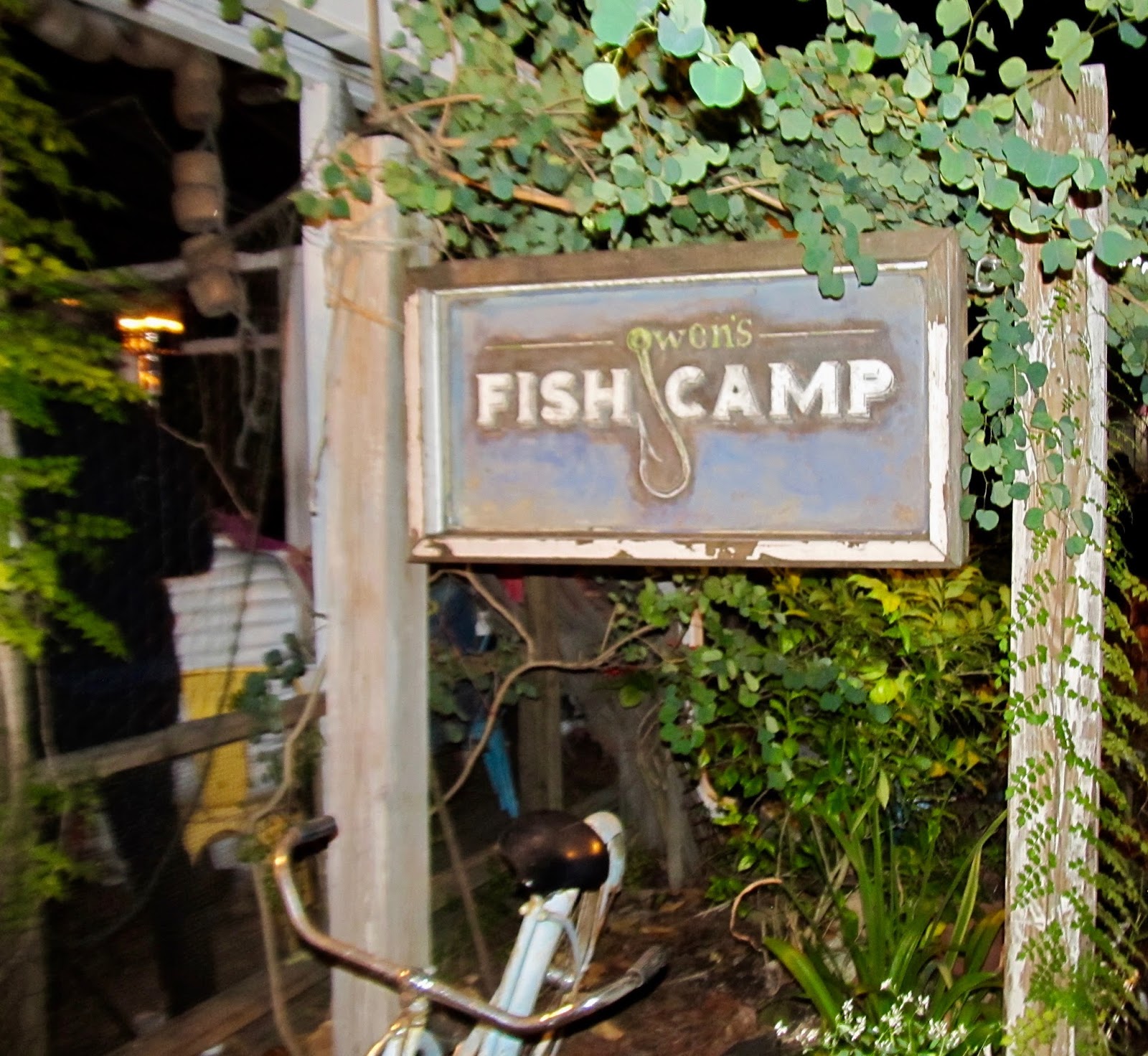 David, Joell and Mike took a short walk to a restaurant called Owen's Fish Camp...